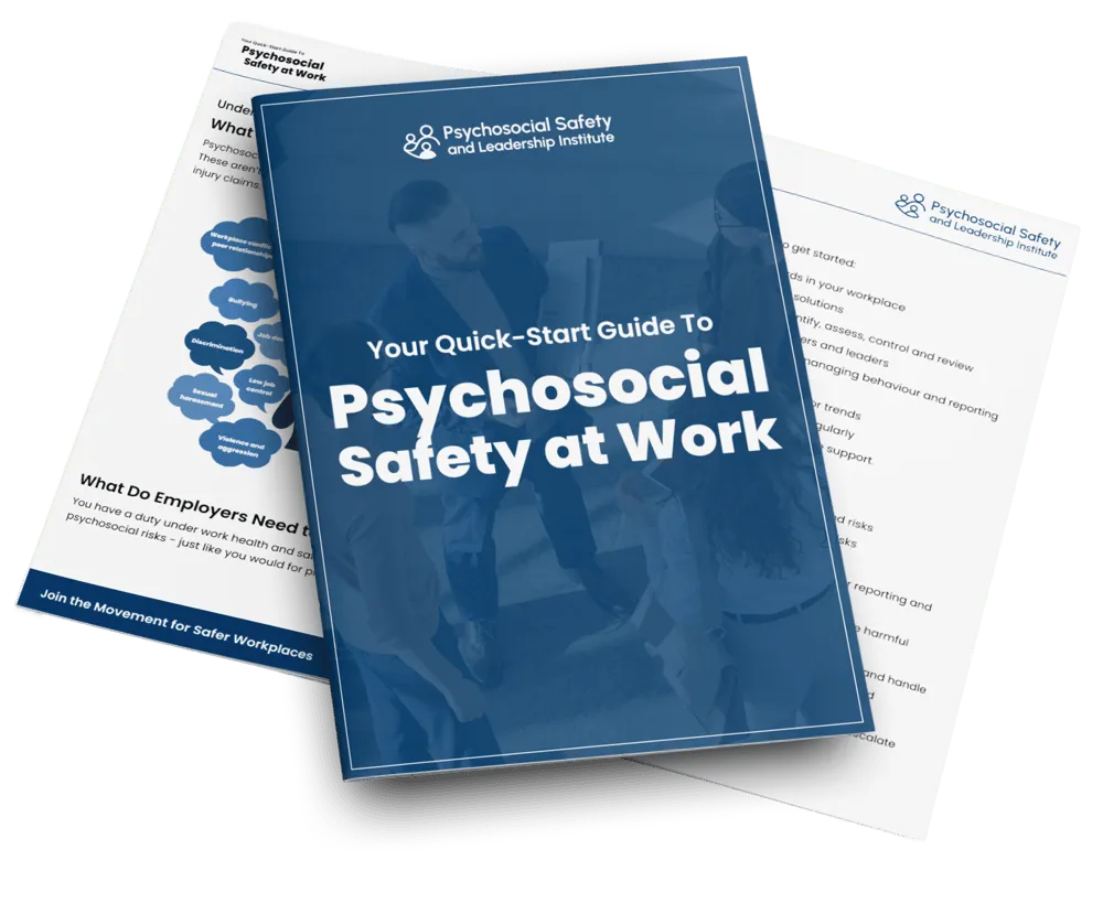 Download our free Quick-Start Guide to Psychosocial Safety at Work. A practical, no-fluff resource to help you understand the biggest risks, what to do about them, and how to take immediate action.