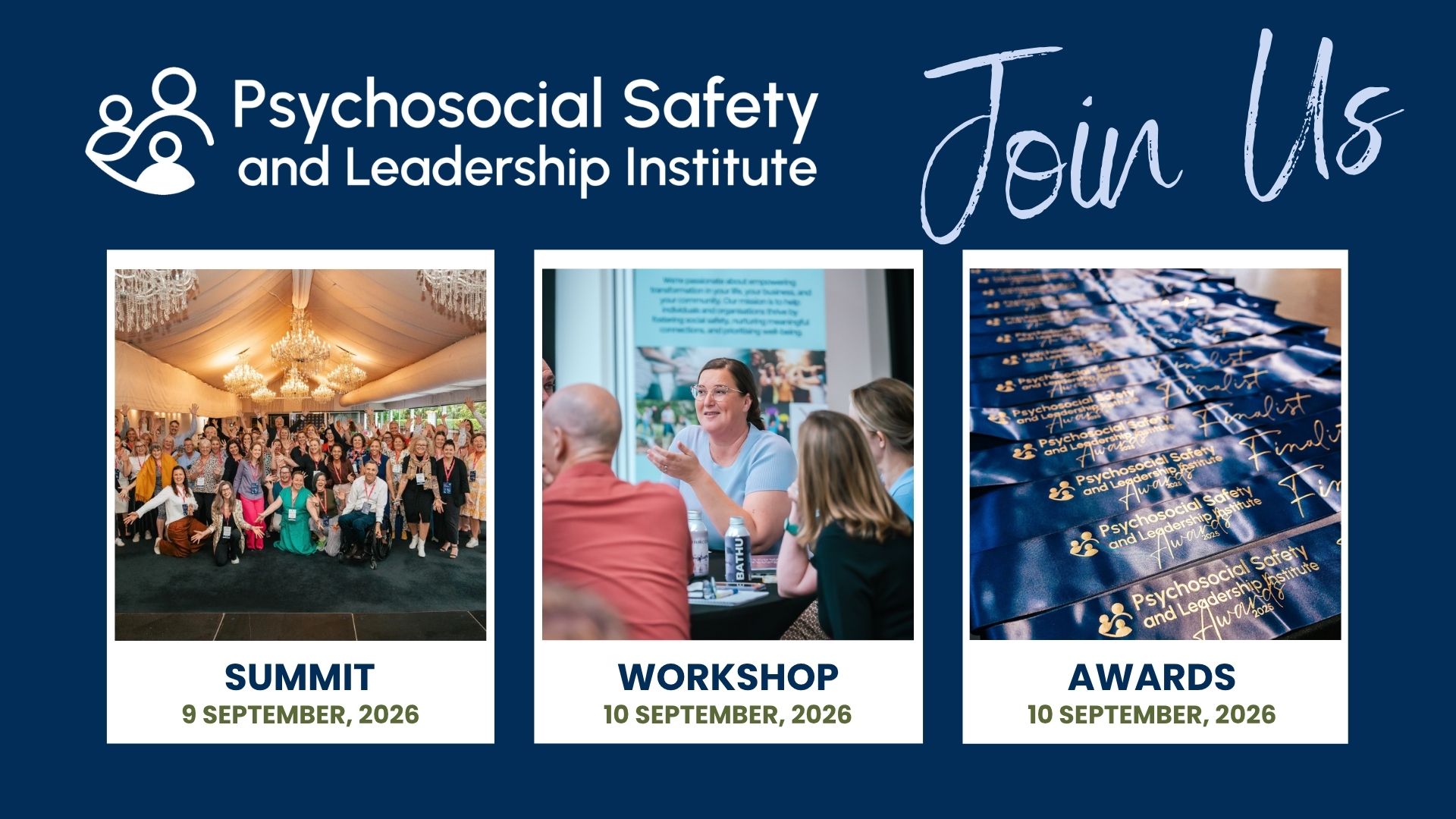 The Psychosocial Safety and Leadership Institute is bringing together dedicated leaders, HR professionals, WHS practitioners and changemakers across Australia for 2 transformative days in September 2026.